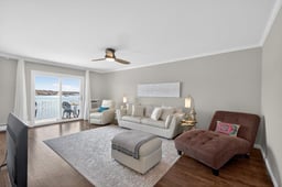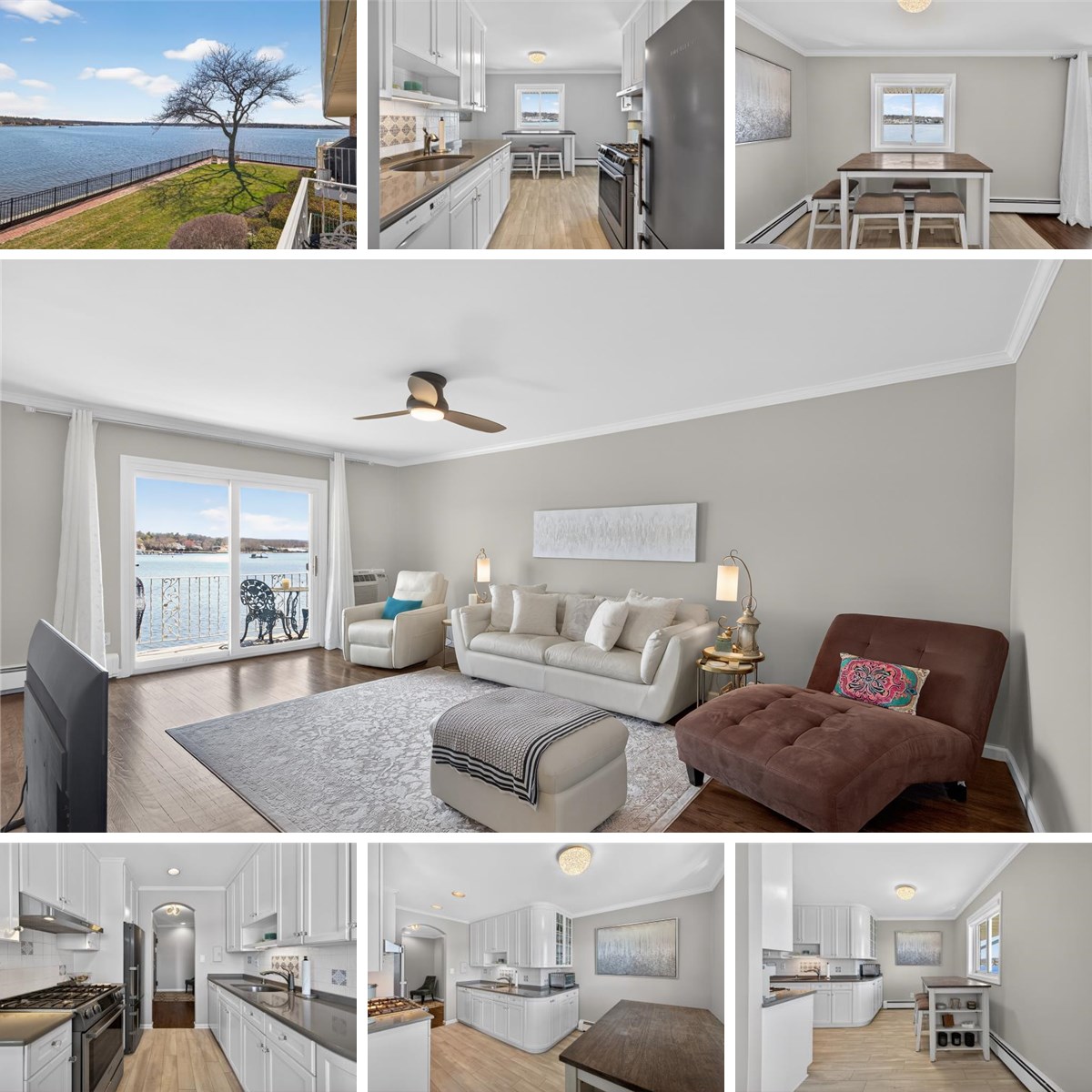 From the moment you walk in, you feel like you’re on vacation—and may never want to leave. This is a rare opportunity to own a beautifully updated 1-bedroom, 1-bath waterfront residence at Toms Point—the first 1BR waterfront unit available in 4 years! Perched on the second floor, this spacious apartment features a private terrace with breathtaking, direct views of Manhasset Bay and the Port Washington shoreline. The home has a sleek, modern feel throughout. The renovated chef’s kitchen features quartz countertops, white cabinetry, new grey flooring, and stainless steel appliances including Bosch and Liebherr, along with a ceramic backsplash and recessed lighting. The living space is bright and open, with dark hardwood floors, crown molding, and a layout that maximizes light and views. The bedroom offers a custom-designed closet and window treatments, and the bathroom is finished in ceramic tile. Additional highlights include abundant storage, Minka ceiling fans, and move-in ready excellent condition throughout. Residents enjoy exceptional waterfront amenities, including a gunite pool overlooking Manhasset Bay, private beach access, kayak storage, mooring rights, and a scenic bayfront promenade. The community also features landscaped grounds, a library, bike and storage rooms, and a daily gate attendant for added piece of mind. Ideally located near the LIRR (approximately 36 minutes to Manhattan), as well as shopping, dining, and all that Port Washington has to offer. New insulated roof installed in 2024. A rare, turnkey waterfront home offering an exceptional lifestyle and truly spectacular views.